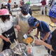「野寺田んぼ」でできたお米を炊き、持ち寄った材料でみそ汁を作っていました。