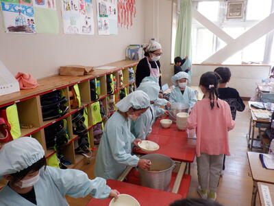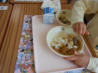 学校応援団の皆様にお手伝いいただきながら、給食当番さんも配膳をがんばってくれました。