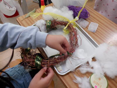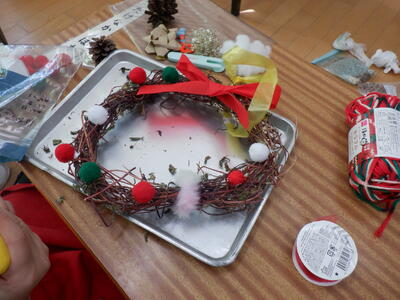 リボンや綿などを使って、クリスマスにふさわしい飾りとなったようです。
