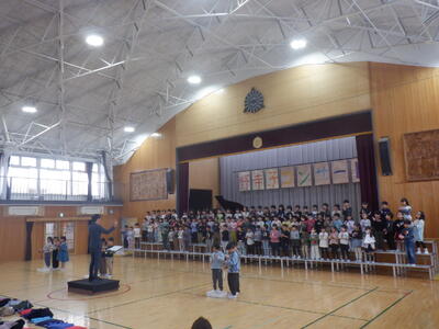 1年生から6年生の全校児童が空調設備の整った体育館に集まり、音楽会を開催しました。