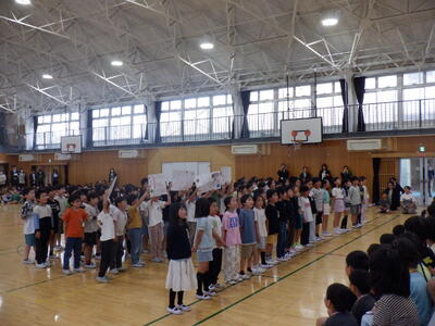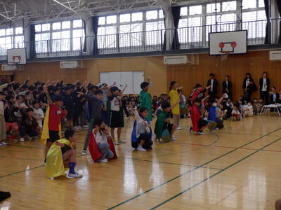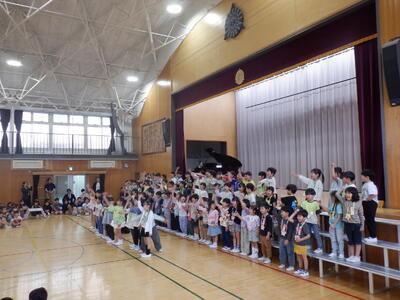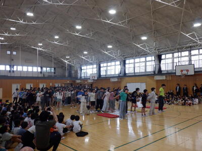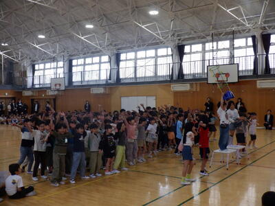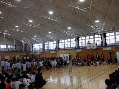 全校の子供たちが体育館に集いました。